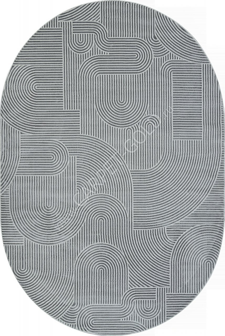 Ковер турецкий E508AQ SIROCCO (PP Heatset Высокоплотный, серый) овальный